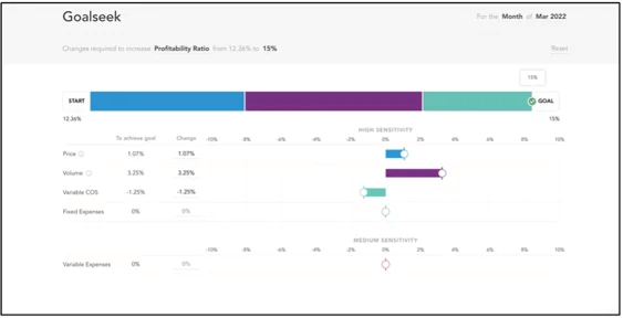 For example, let’s say you want either your gross profit margin or revenue to be a certain percentage. But what triggers do you need to pull to get there? This is where comparing Excel and Fathom becomes apples and oranges. In Excel, you can do it with numbers, but you would first have to build the visuals and make the visual interact with the numbers you’re crunching. With Fathom, you don’t have to do any of that. With their goalseek feature, you can do it instantaneously with your data and numbers. The built-in module allows you to type in your percentage goal for either profit margin or revenue, and it will show you how much you must change your revenue, your cost of sales and expenses by to achieve that goal just by switching the visuals around. It doesn’t get much easier than that.